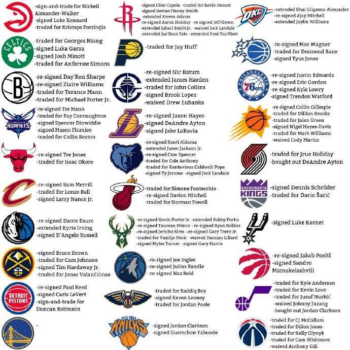 值得一提的是,联盟29支球队均有操作,仅剩勇士没有任何引援。